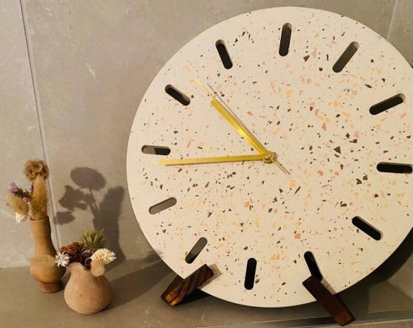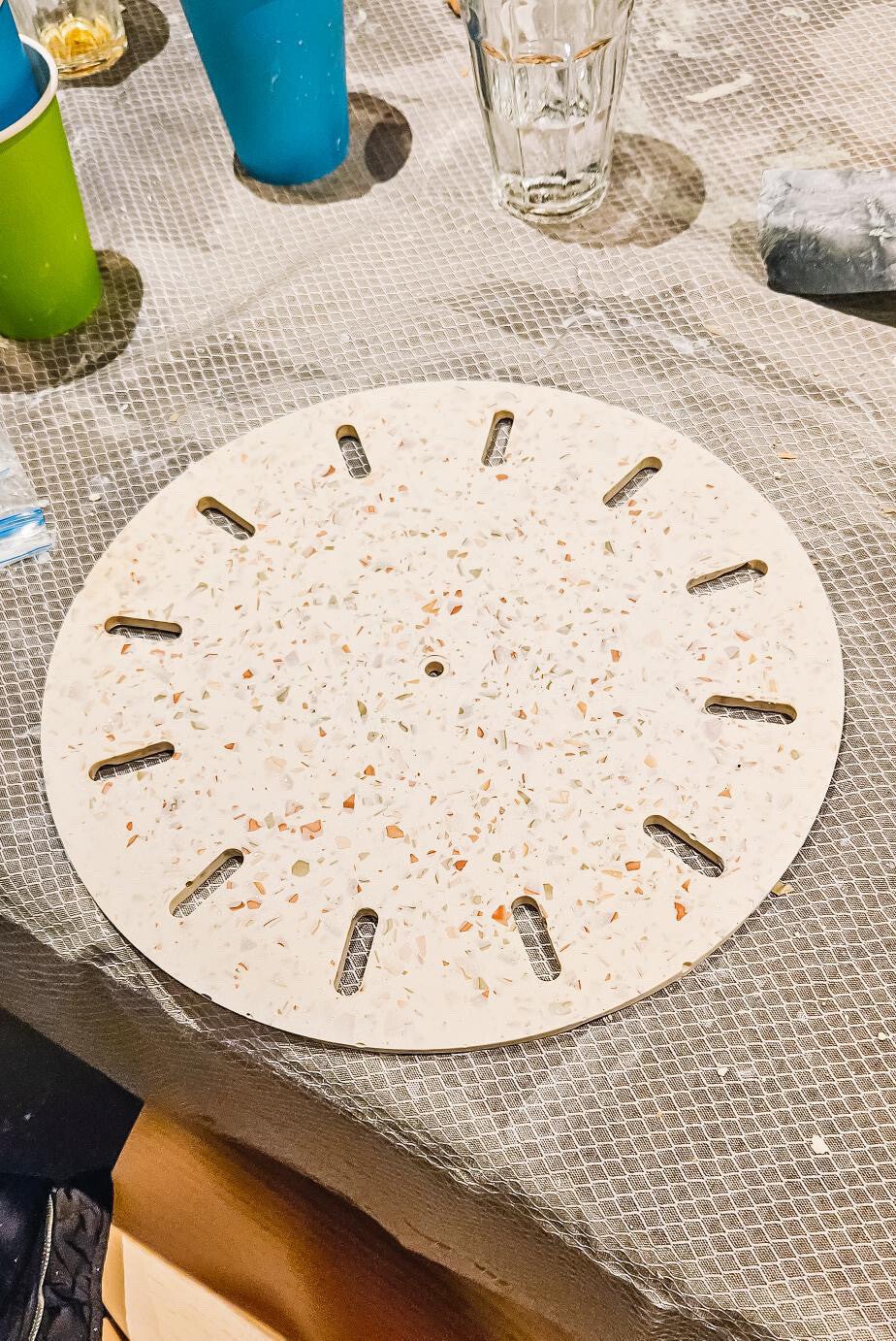 Heb jij zin om aan de slag te gaan met terrazzo? Kriebelt het al in je vingers om zelf je flakes te maken en te experimenteren met kleuren? Wil je naar huis gaan met zelfgemaakte terrazzo wandklok en daar iedereen ‘Zjaloes’ mee maken? ;-)
